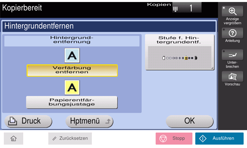 [Hintergrundentfernung] | Kopiert ein dünnes 2-seitiges Original oder ein Original mit einem farbigen Hintergrund mit der optimalen Bildqualitätsstufe.