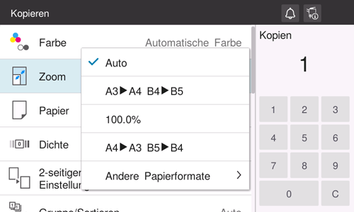 [Originalformat] | Wählen Sie das Format des zu kopierenden Originals aus. |