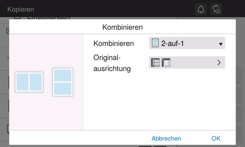 Wählen Sie unter [Kombinieren] die Anzahl der Seiten aus, die auf dieselbe Seite eines einzelnen Blatts kopiert werden sollen.