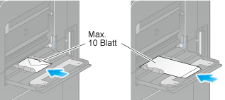 Maximal 10 Umschläge können in die Stapelanlage/den Spezialeinzug eingelegt werden.
