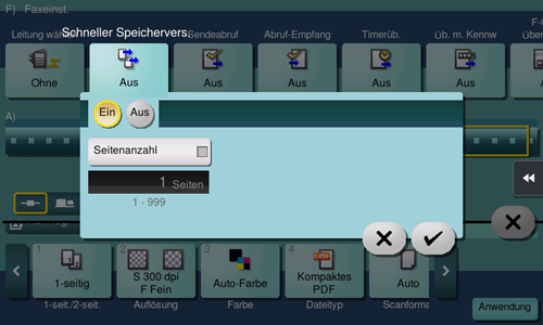 [EIN]/[AUS] | Wählen Sie [Ein], um den schnellen Speicherversand zu aktivieren. |