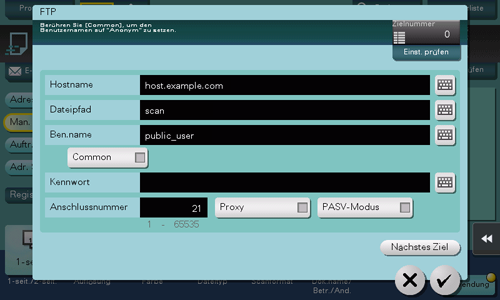 Geben Sie die Zielinformationen für die FTP-Übertragung manuell ein.