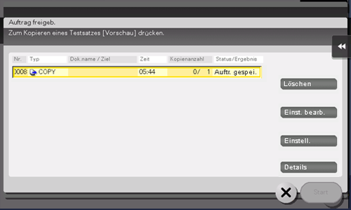 Zum Löschen eines Auftrags tippen Sie auf [Löschen].
