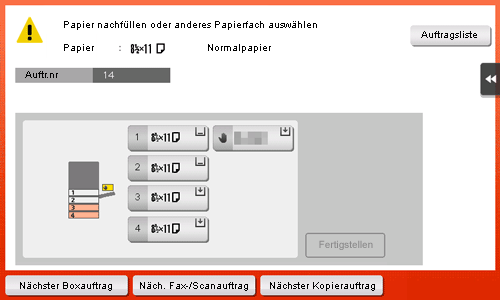 [Original] | Das Papierfach für den Druck des Originals wird angezeigt. |