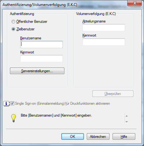 Wenn Sie immer denselben Benutzernamen und dasselbe Kennwort verwenden, können Sie diese Angaben vorab registrieren, damit Sie sie nicht jedes Mal eingeben müssen. Ausführliche Informationen finden Sie Hier.