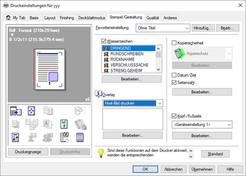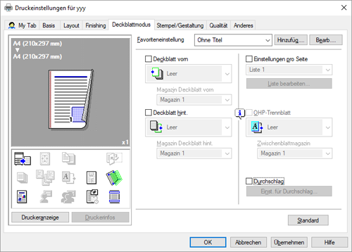 Aktivieren Sie auf der Registerkarte [Deckblattmodus] das Kontrollkästchen [Durchschlag].