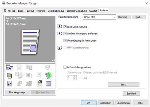 [Leere Seiten überspringen] ist nur verfügbar, wenn der Druckertreiber für Windows verwendet wird.