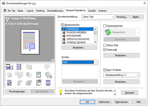 Drucken Sie einen Stempel, wie z. B. "Kopie" oder "Privat", auf die gesamte Seite.