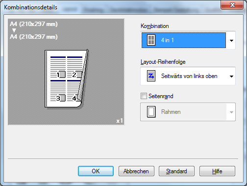 Klicken Sie gegebenenfalls auf [Kombinationsdetails...], um die Layout-Reihenfolge auf der Seite festzulegen und anzugeben, ob Abgrenzungslinien zwischen den Seiten eingefügt werden sollen.