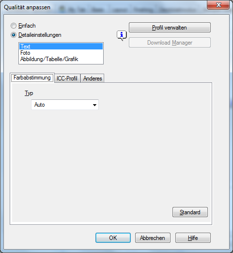 Wählen Sie unter [Papiertyp] auf der Registerkarte [Basis] den Typ des Papiers für den Druck aus.