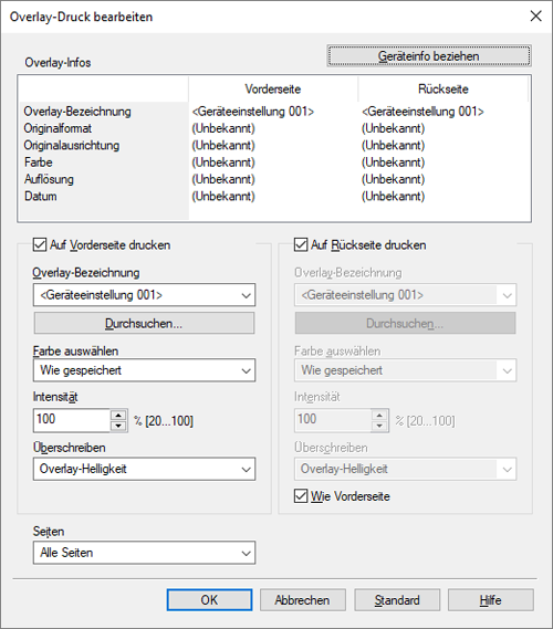 Wenn Sie beim beidseitigen Druck der Bilder das Kontrollkästchen [Gleiche Werte für Vorder- und Rückseiten] aktivieren, werden für beide Seiten dieselben Einstellungen angewandt.