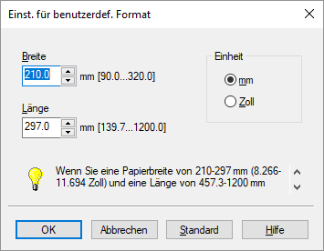 Wählen Sie unter [Originalformat] auf der Registerkarte [Basis] die Option [Ben.d. Format].