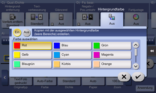 [Hintergrundentfernung] | Kopiert ein dünnes 2-seitiges Original oder ein Original mit einem farbigen Hintergrund mit der optimalen Bildqualitätsstufe.