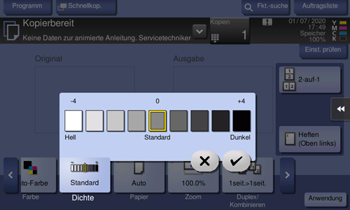 Wählen Sie die optimalen Einstellungen für das Kopieren des Originals mit der optimalen Bildqualitätsstufe.