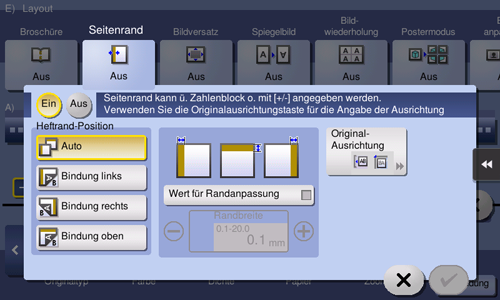 [EIN]/[AUS] | Wählen Sie [EIN], um den Binderand zu aktivieren. |