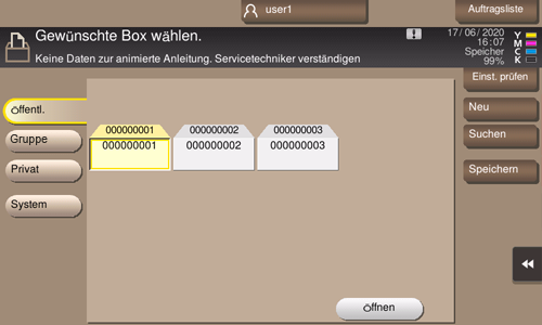 Wählen Sie [Bedienerprogramm] - [Bedienerprogramm] - [Box] - [Boxliste].