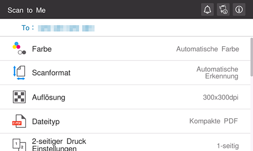Nach der Auswahl von [Scan to Me] im Startbildschirm können Sie einfach und problemlos eine E-Mail nur an sich selbst senden.