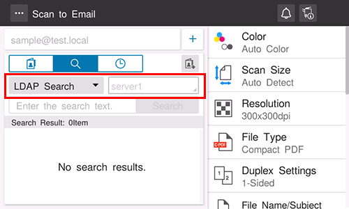 • A presetting is required to use LDAP search. For details on the setting procedure, refer to Here.