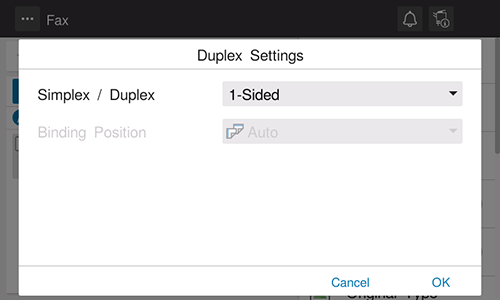 Select the side to scan the original (Simplex/Duplex).