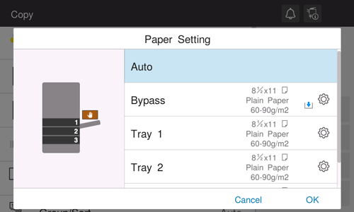 Selecting [Auto] automatically selects a tray that contains paper of the same size as the original.