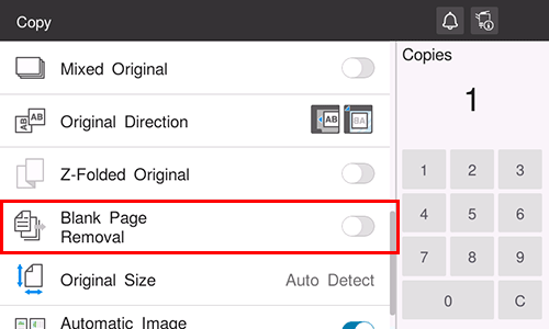 When [Blank Page Removal] is specified to scan an original including blank pages using the ADF, blank pages are excluded from scan targets. Blank pages detected are not counted as original pages.