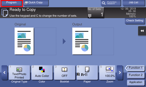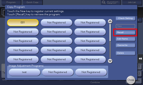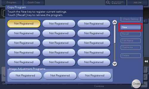 Program is a function used to register a combination of various copy settings as a recall key. The program to be registered in the copy mode is referred to as a copy program.