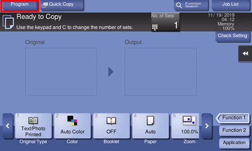 When you register a copy program, you can simply recall a combination of various copy settings from the main screen.