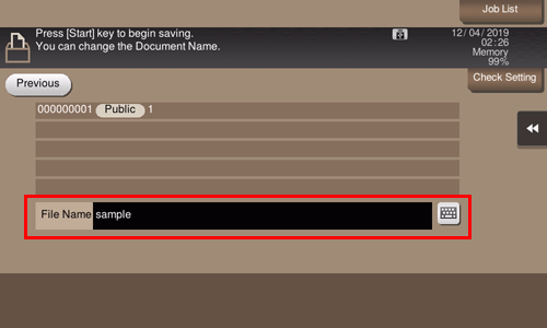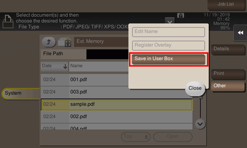 3. Tap [Save Ext. Memory Doc. in User Box].