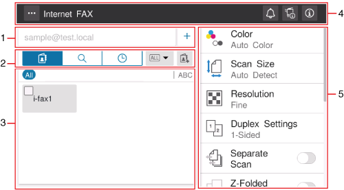 If you tap [Internet Fax] on the home screen, the main screen of Internet Fax is displayed.