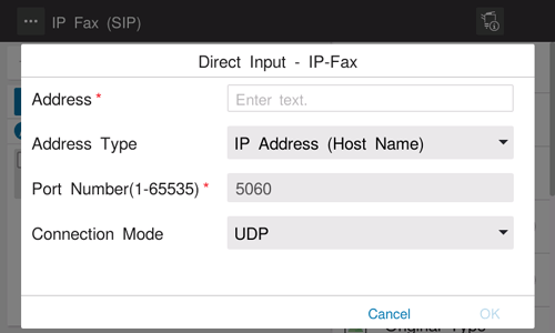 When [IP Address (Host Name)] is selected in [Address Type], change the port number as needed (default: [5060]).
