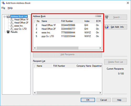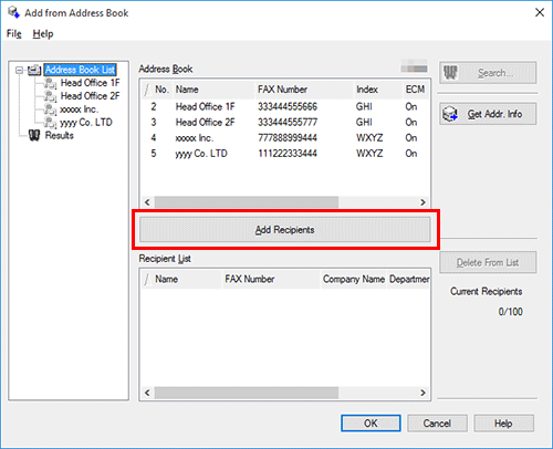 Select the recipient from the [Address Book] list, then click [Add Recipients].