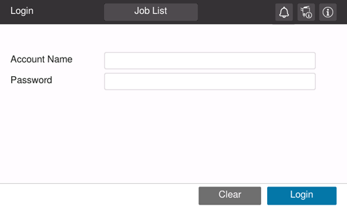 When account track is enabled on this machine, the login screen is displayed. Enter the account name and the password to perform account track.