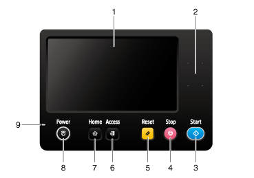 2 | Keypad | Enter numeric values such as the number of copies or zoom ratio. This keypad is also used to select a numbered setting key. |
