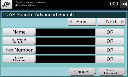 1. Tap [LDAP Search] - [Search] or [Advanced Search].