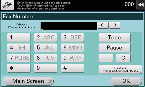 • Tapping [Enter Registered No.] enables you to specify a destination with a registered number.