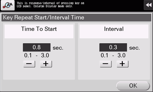 When necessary, change the time from pressing a key to starting a key repeat, and the interval to enter successive characters.