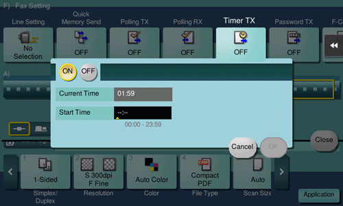 Specify when to start fax transmission. The fax is automatically sent at the specified time.