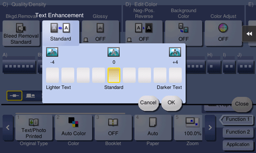 If you want to enhance the background against text, adjust to the [Lighter Text] side.