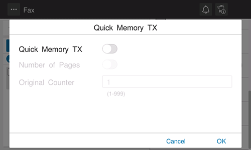 Quick Memory TX is a method to start sending a fax as soon as one page of the original has been scanned. The total number of sent pages can be entered in the sender record.