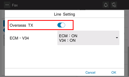 The Overseas TX Mode function reduces the transmission speed (the information transfer speed) for sending a fax.