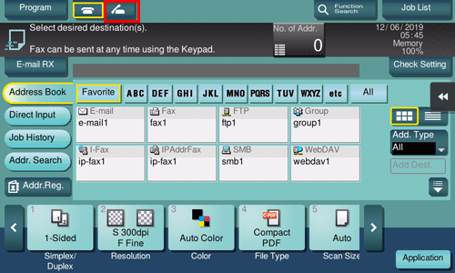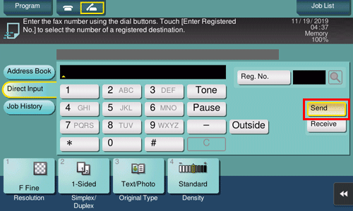 When you set [Check Destination] to ON when registering a fax destination, the Check Dest. and Send function is performed before a fax is sent to a registered destination. For details on how to register a fax destination, refer to Here.