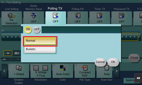 Tap [Application] - [Fax Setting] - [Polling TX], and tap [ON].