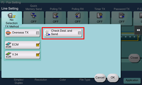 Set [Check Dest. and Send] to ON, and tap [OK].