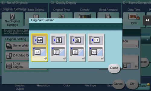 When scanning a 2-sided original, specify the original loading direction so that the vertical direction of the scanned original is set correctly.