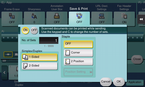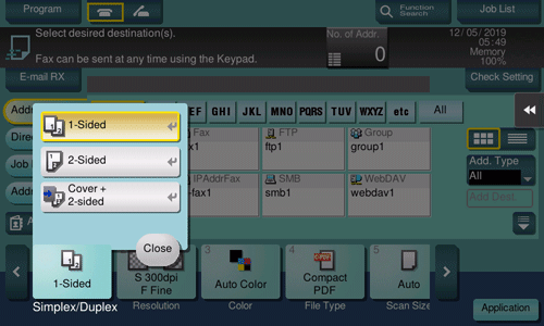 Select the side to scan the original (Simplex/Duplex).