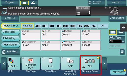If the number of original sheets is so large that they cannot be loaded into the ADF at the same time, you can load them in several batches and handle them as one job. You can also scan the original using both ADF and Original Glass alternately.