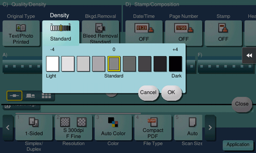 Adjust the density (Dark or Light) to scan the original.