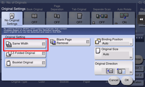 If a folded original is loaded into the ADF, the original size may not be able be detected accurately. When [Z-Folded Original] is specified, the original size can be accurately detected even for the folded original sheets.