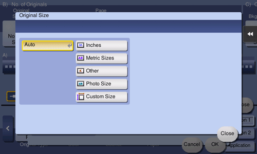 When the size of the original is not detected correctly, specify the size of the original you want to scan. If the machine cannot detect the size of irregular sized originals or photos, manually specify the size.