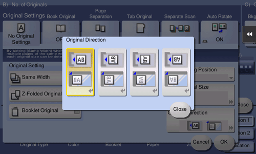 When scanning a 2-sided original, specify the original loading direction so that the vertical direction of the scanned original is set correctly.